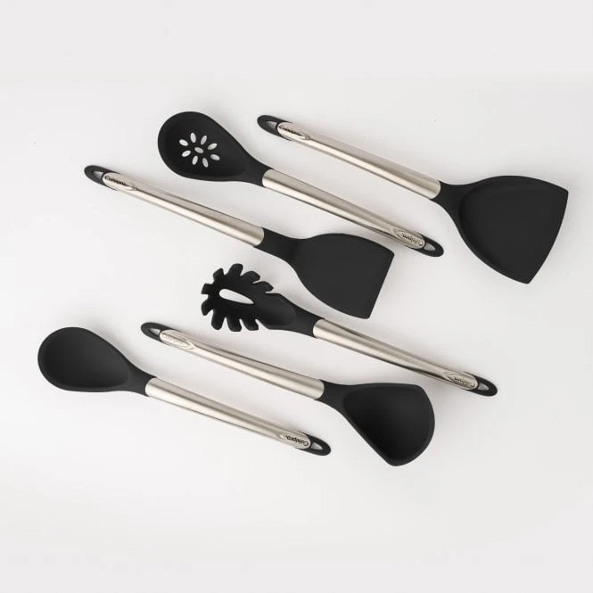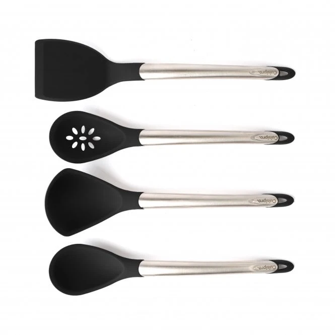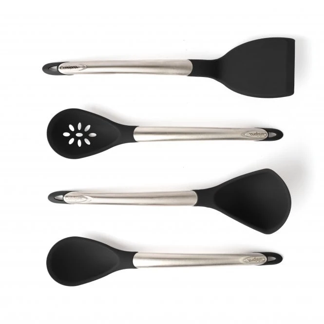 CUISIPRO Silicone Tool Set-LadleTurnerSpoon & Slotted Spoon Black
