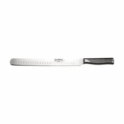 The G-87 which is the new code series for the G-65, G-59 and G-60 are all fluted ham/salmon slicers featuring 27cm, 30cm and 35cm blades respectively. Very similar to the G-10 these knives have wider blades and are NOT flexible. Whilst they can be used for fish, they are a lot sturdier so will work better with ham. These knives were specially manufactured for the Spanish and Italian markets.