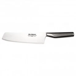 The GF-36 is the fully forged version of Global’s extremely popular G-5. The shape of the knife is specifically intended for chopping vegetables. The GF-36 has a long flat blade designed to come into full contact with the cutting board with each stroke and create clean cuts of each vegetable. The deep blade will make easy work of heavy vegetables such as sweet potato, squashes and beetroot. The front of the blade has a slight upward curve for slicing and dicing vegetables.