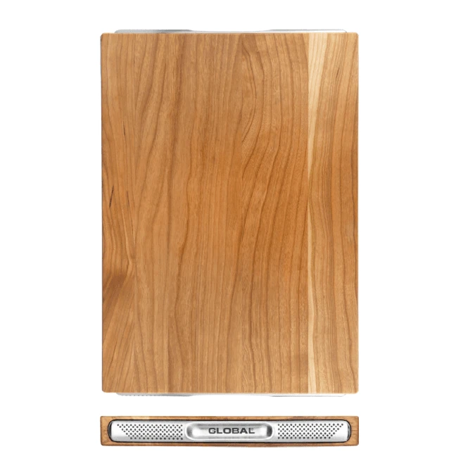 Made from Cherry Wood, evoking the Sakura of Japan. Cherry Wood is a soft wood and is kinder to knives than Acacia or Oak, so will preserve knife edges. Wood is also naturally anti-bacterial. Cherry Wood has a luxurious deep reddish colour, sure to stand out in any kitchen.