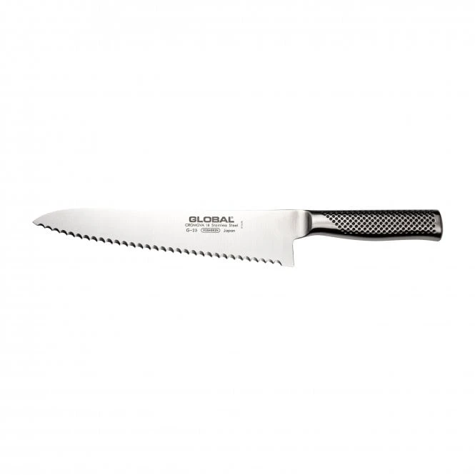 Master the art of slicing with the Global G-23 Scalloped Bread Knife. Designed for those who demand more from their cutlery, this 24cm blade features a deep-profile serrated edge that bridges the gap between a traditional bread knife and a heavy-duty chef’s knife, offering the power needed for the toughest crusts.