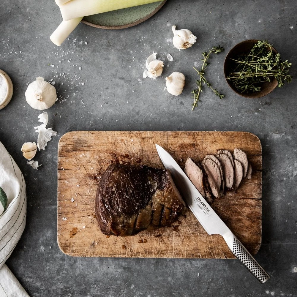 Master the art of the Sunday roast with the Global G-3, a precision instrument designed for the perfect slice. This specialist knife features a long, narrow 21cm blade specifically engineered to glide through beef joints, poultry, and hams with effortless accuracy.