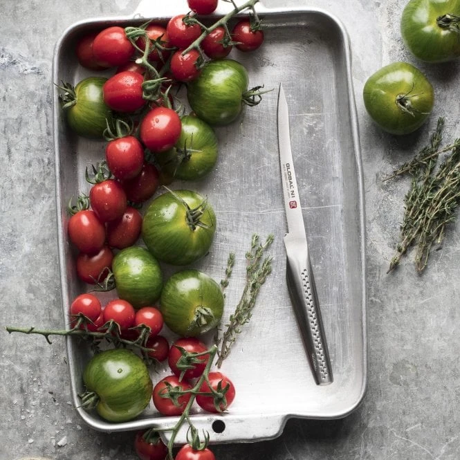 The GNS-05 is a classically shaped boning knife, good to fillet fish. It has a slight serration on the blade.