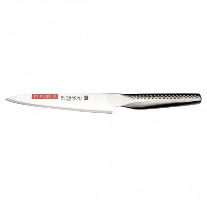 The GNS-06 is a small flexible utility knife made for the Global Ni range and is a good useful alrounder in any collection. The knife performs much in the same way as the GS-11 Global classic utility knife. Good for filleting small fish such as seabass and seabream or as a small carving knife for chicken and duck. The knife is available in a larger version as the GNM-12.