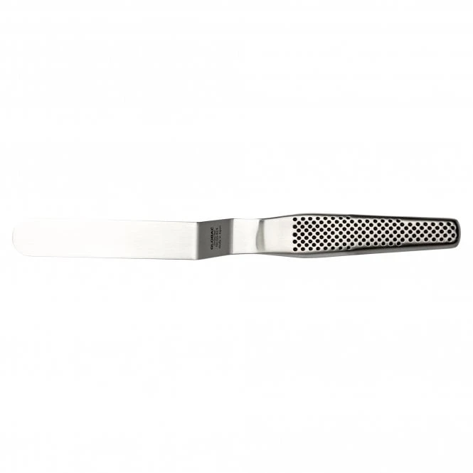 Global produce 4 different sizes or cranked spatula, a 10cm, 15cm, 20cm and 25cm. These ‘cranked’ spatulas are so named due to the large kink in the knife blade. This raises the handle somewhat away from the cooking surface, keeping your hands cooler. It also makes it easier to get a fully flat connection between the knife blade and the frying surface, ideal if you need to press down on any burgers or bacon to help it cook faster. All the GS-42 series feature a hollow handle with thumb rest for added control.