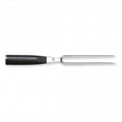 Designed with specific curves and very sharp points to be able to hold meat in place as it gets carved. The two prongs that are made from durable, high-quality steel that characterise its shape, indicating that this is a precise tool that is used for hygienic processing of cooked food but also for serving onto plates.