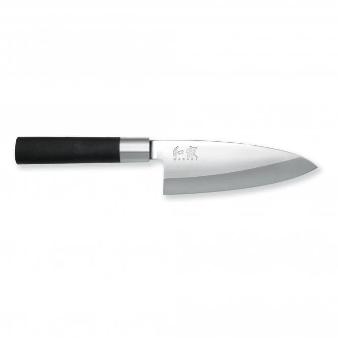 Experience the perfect blend of tradition and modern performance with the Kai Wasabi Black 15cm Deba Knife. Designed for precision fish filleting and meat preparation, this “little carving knife” is a staple for any serious chef. The visual contrast between its high-polish stainless steel blade and the matte black ergonomic handle brings a minimalist, professional aesthetic to your kitchen workspace.