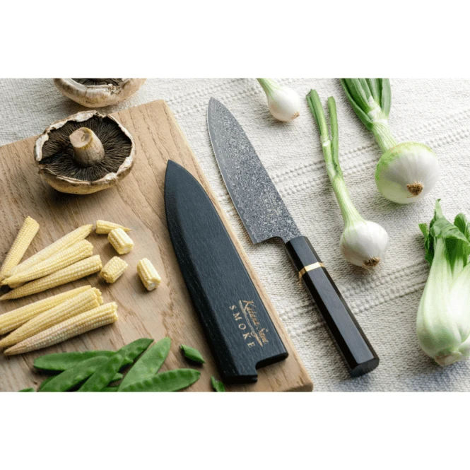 The Katana Saya Smoke 20cm Chef’s Knife is a masterpiece of Japanese-inspired design, tailored for chefs who demand both performance and a unique visual identity. The “Smoke” finish is achieved through a specialized acid-wash process, giving the 67 layers of Damascus steel a luxurious, dark matte appearance while increasing the blade’s rigidity and resistance to corrosion.