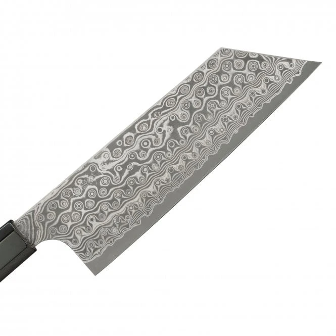 The blade of the Nigara Hamono knife features an SG2 core, known for its exceptional performance and longevity. The core is clad in stainless steel, striking a balance between edge retention and durability. This combination ensures that the knife maintains its sharpness over extended use while being resistant to stains and corrosion.