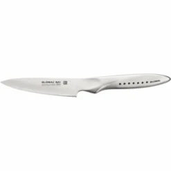 The SAI-S01 9cm & SAI-S02 10cm are small paring knives that can be compared to the GS-36 in the classic Global line. The knife is made for small kitchen tasks, such as peeling vegetables or cutting up fruit. Global SAI produce two 9cm paring knives, the other being the SAI-F01. The difference here is that the S01 has a longer hollow handle. This makes the knife a bit more comfortable in the hand, but the handle with the thumb rest forces you to hold the knife in a certain way and we would suggest that makes this paring knife a better cutting and slicing knife than the F01.