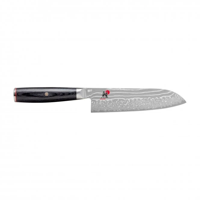 Using traditional Samurai forging techniques since the 14th century the city of Seki is the birthplace of the Miyabi brand, taking 100 steps and 42 days to create each blade. The manufacturing techniques employed produce knives with durable and precise cutting edges which is the foundation of the Miyabi brand. The Miyabi 5000FCD Santoku Knife has a plain edge and is 18cm in length. The octagonal pakka wood handle gives a well balanced and comfortable grip with a wonderful mosaic pin providing a wonderfully aesthetic finish to a beautifully crafted blade. The Ice- hardened FC61 steel used for the FRIODUR blade of the Santoku is wrapped in 48 layers of steel to create a Damascus design. Honed on both sides using the Honbazuke technique making it ideal as a multi-purpose blade. Santoku is the 3 in 1 blade for meat, fish and vegetables, ” San” which means 3 in Japanese represents its versatility in use across all the three main food groups. This being 18cm in blade length makes it the perfectly sized Santoku within the 5000FCD range. The blade as its name suggests makes it the most versatile and effective blade for almost any use within the kitchen.