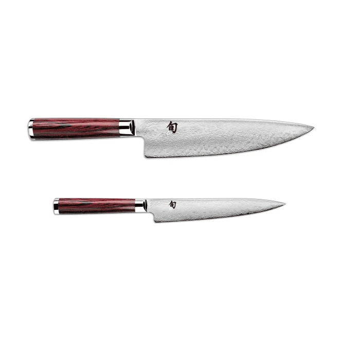 The Kai Shun Kohen Limited Edition Anniversary Luxury Set commemorates the remarkable milestone of ten million sales of the iconic Shun knife series. This exclusive set comprises a chef’s knife and a utility knife, both fashioned from 72 layers of dual-core Damascus steel. These blades are meticulously forged, alternating between flexible VG2 steel and durable VG10 steel, resulting in exceptional strength and precision.