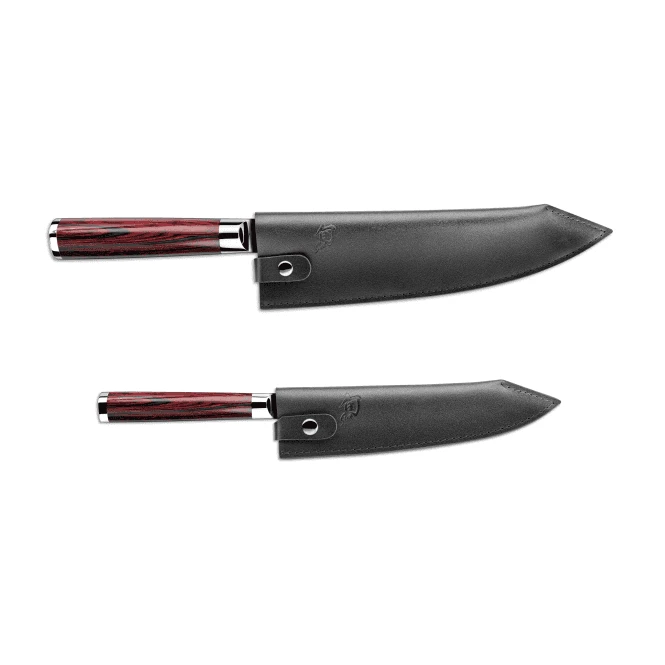 Each knife is adorned with a unique serial number and is elegantly presented in a padded aluminium case bearing the iconic Shun logo. Additionally, the set includes two leather sheaths for added protection of the razor-sharp blades.