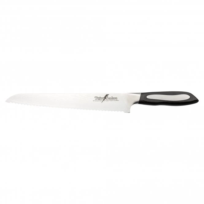 It is a specialist knife, really for use with bread only. The teeth are made to saw through the crust of bread but could also be used for some tough meats, for example crackling. The funny thing is, the Japanese do not really eat bread and so it is one of those products that they never really understood! If you look closely at the knife blade you will see that on the face of the knife, the teeth have a chamber whilst on the back of the knife, the face is flat. When you cut into bread, you will automatically cut inwards in a curve rather than straight down and the chamber is there to help correct this so that your slicers will be more of a similar thickness all the way through.